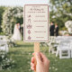Fully editable, this wedding program hand fan allows you to customize names, timelines, wedding party details, and wording to perfectly reflect your day.