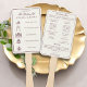 Mounted on a smooth wooden handle, this program doubles as a practical accessory—ideal for outdoor ceremonies, summer weddings, destination celebrations, garden venues, estate settings, and European-inspired events. The soft ivory background pairs beautifully with black-tie affairs, old money weddings, vintage-inspired celebrations, and classic romantic themes.