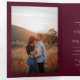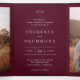 Classic style all in one tri-fold wedding invitation featuring a simple yet elegant design in a deep burgundy color that is perfect for a fall wedding or a winter / Christmas wedding. Use the template to add photos and a QR code or remove either in the design editing tool.