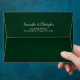 These beautiful emerald green wedding envelopes are perfect for making your invitations all the more special. They feature a romantic design on the inside flap with a single long stemmed emerald green coloured rose reflecting in a pool of water. The back flap has your return address in lacy script calligraphy. Sophisticated and chic, these envelopes will add a touch of class to any mailing.