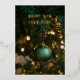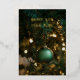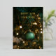 Wish friends, family, and colleagues a truly Happy New Year with this sophisticated card. Featuring a deep, moody green Christmas tree backdrop illuminated by warm bokeh lights, the design is centered around a matte green ornament. The holiday message, "HAPPY NEW YEAR 2026!", stands out with luxurious, shimmering gold foil text for an elegant and festive greeting.