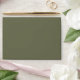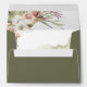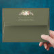 Elegant deep green envelope with beautiful surprise inside with delicate watercolor palm leaves, foliage and flowers in green, olive, beige, white, peach, orange, terracotta and lilac lavender hues, pair with soft green watercolor stain cascading inside. Top back flap custom text section with decorative foliage and floral detail that can be use for your return address details or any other message you like (i.e. "THE WEDDING OF ...") Part of our "Palm Leaves Tropical Floral Green Collection" with a variety of coordinating products including address labels.