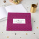 Elegant deep pink WELCOME TO OUR HOME Guest Book with customisable hospitality Bible verse on the back. TO OUR HOME is customisable so you can replace with your family name. Bible verse on the back is also customisable, so you can edit or delete. Elegant script typography and subtle tiled pattern saying WELCOME makes this a stylish addition to the entrance of your home, your guest house or to your business reception area. Available in other trending and popular colours.