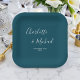 Elegant Deep Teal Script Minimalist Wedding Paper Plate