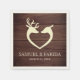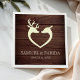 Elegant wedding paper napkins featuring a cute deer couple with modern typography against a barn wood background.