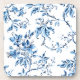 Elegantly drawn classic and clean floral featuring delicate Delft blue vines, flowers and curving branches on white background.