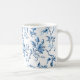 Elegantly drawn classic and clean floral featuring delicate Delft blue vines, flowers and curving branches on white background.