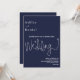 This elegant navy blue wedding invitation is perfect for a modern wedding. the simple design features elegant white calligraphy on a blue background.