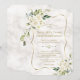 Elegant Delicate White Flowers Gold Marble Wedding Invitation