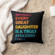 Elegant Mothers day Throw Pillow featuring a cute saying that reads "Behind Every Great Daughter Is A Truly Amazing Mum." With colourful stripes.