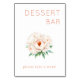 This is a minimalist style image featuring soft, pastel-colored peonies with delicate green leaves. The text "DESSERT BAR" in warm coral tones sits above the floral arrangement, while "please take a treat!" invites guests warmly below. The overall mood is gentle and inviting, perfect for adding an elegant touch to any event or gathering.