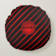 Elegant Diagonal Black Red Stripes Monogram Name Round Cushion