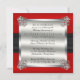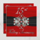 Brilliantly sophisticated and stylish Fifteenth Wedding Anniversary faux red satin look background and black satin ribbon with diamonds and rubies in a gated style that is continued on back. The back has a silver and pearlescent faux card overlay mounted in the corners with the ruby and diamond clasps. Original design by Holiday Hearts Designs (all rights reserved).
