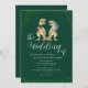 Dark Emerald Green and White Dinosaur Wedding Invitation Fun Modern T-Rex Bride and Groom Design