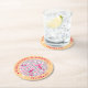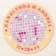 Personalised sparkling disco ball coasters for your disco wedding. Fun and elegant in shades of pink red and light golden orange, these round coasters with your names circling the disco ball will add a unique accent to your bar and tables. Perfect for an elegant disco or tropical disco theme. Retro 70s fonts add a groovy touch.