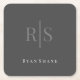Elegant DIY Grey Monogram & White Name, Dark Grey Square Paper Coaster