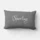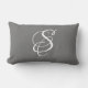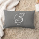 Elegant DIY White Script Monogram & Surname/Grey Lumbar Cushion