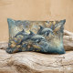 Elegant Dolphins with Golden Floral Waves Lumbar Cushion