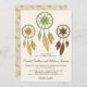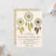 Amaze your guests with this bohemian style wedding invitation featuring beautiful dream catchers against a beige background. Simply add your event details on this easy-to-use template to make it a one-of-a-kind invitation. Flip the card over to reveal an elegant brown tribal pattern on the back of the card.