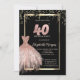 Elegant Dress,Confetti Rose Gold 40th Birthday Invitation