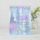 Elegant Dress Rainbow Drips Blue Metallic Invitation