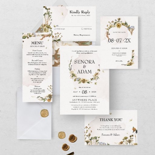 Celebrate your special day with this Elegant Floral Wreath Wedding Invitation. Designed with a delicate floral wreath that exudes timeless charm, this invitation blends soft watercolor hues and intricate botanical details to create a romantic and elegant design.