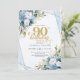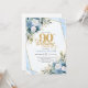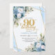 Elegant Dusty Blue 90th Birthday Floral Script Invitation
