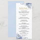 Elegant Dusty Blue and Gold Floral Wedding Dinner Menu