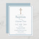 Celebrate your little one's special day with our elegant dusty blue baptism invitation. This affordable paper invitation features a beautiful dusty blue border and a stunning gold effect crucifix on a clean white background, perfect for any baby boy or girl's baptism or christening.