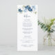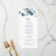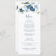 Our wedding menu cards features dusty blue and white flowers, eucalyptus leaves with modern typography on white background. Easily edit the details by clicking the "Personalise" button.
