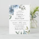Beautiful dusty blue botanical flowers and soft foliage, wedding invitation.
