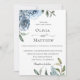 Beautiful dusty blue botanical watercolor flowers and soft foliage, wedding invitation.
