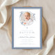 Elegant Dusty Blue Bow Boy Photo Baptism Invitation
