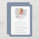 Elegant Dusty Blue Bow Photo Boy Baptism Invitation