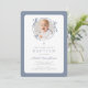 Elegant Dustyy Blue Bow Photo Boy Baptism Invitation. For best results upload a square image of the baby.
