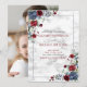 Elegant Dusty Blue Burgundy Floral Photo Wedding Invitation