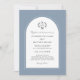 Elegant Dusty Blue Calligraphy Crest Arch Wedding Invitation