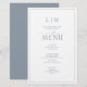 Planning a wedding can be a stressful process, but don't let the menus be one of your worries. Introducing the Elegant Dusty Blue Calligraphy Monogram Wedding Menu. This modern, formal, yet elegant menu will have all eyes on the table! Guests will marvel at the 5.5"x 8.5" menu that features a stunning Dusty Blue border and your very own custom monogram. Personalise with your details and accented with modern hand lettered calligraphy in a beautiful Dusty Blue. There's no need to worry about style - the menu speaks for itself in that regard! So add a touch of class to your special day with this stylish item. You'll be glad you did! Part of a matching wedding set. View entire suite here: https://www.zazzle.com/collections/119755794085503030
