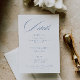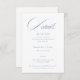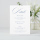 Classic wedding details card featuring elegant dusty blue calligraphy.
