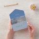This all in one wedding invitation card is special. You get your changeable invitation card and the RSVP card all in one. You can customise the simple and minimal wedding invitation card with your monogram, intro, names, occasion, date, adress, rsvp, meals and other background colours and fonts to your preferations. You can even change the image or put a photo on it. It shows a harmonious blends of dusty blue tones and it has fitting white typography. The design itself shows a coastal ocean marble design. It is a changeable photo or image design. You can elegant seal and send this trifolded budget wedding invitation. Send the tear off RSVP Postcard back to the sender. Make this special design yours and feel this personalised design for your future wedding. Hobinishop