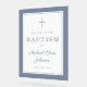 Elegant Dusty Blue Cross Boy Baptism Welcome Foam Board.