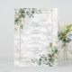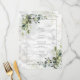 Create the perfect reception setting with this trendy, elegant menu design featuring light dusty blue eucalyptus greenery botanical elements, a dusty blue frame and faux Carrera marble background. Part of a wedding invitation suite. Copyright Elegant Invites, all rights reserved.