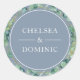 Dusty blue wedding sticker template where you can create your own custom bride and groom name labels to compliment your dusty blue wedding favours. Add an stylish touch to your favours, gifts, and invitations with these whimsical, minimalist watercolor eucalyptus leaves sticker seals.
