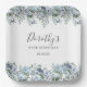 Elegant Dusty Blue Floral 21st Birthday Custom Paper Plate