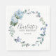Elegant Dusty Blue Floral 80th Birthday Custom Napkin