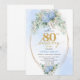 Elegant Dusty Blue Floral 80th Birthday Invitation