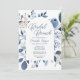 This elegant bridal brunch invitation combines a minimalist design with beautiful watercolor florals in shades of dusty blue. The boho-inspired aesthetic features delicate leaves and soft petals, creating a sophisticated and modern look that perfectly complements a blue-themed wedding or bridal brunch. The invitation exudes a sense of calm and elegance, ideal for brides who appreciate both simplicity and style. Perfect for those planning a chic celebration, this refined design makes for a lovely keepsake. The handcrafted touch adds a personal feel to any bridal event, highlighting the love and joy of the upcoming wedding.