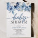 Elegant Dusty Blue Floral Flowers Baby Shower Invitation