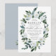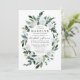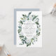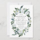 Designs features elegant watercolor floral elements in shades of dusty blue, steel, mist and more over a painted greenery wreath. The back features a matching light blue shade. The back also features a bouquet of matching flowers and eucalyptus. View the collection on this page to find matching items in this design.
