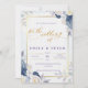 Elegant Dusty Blue Floral Gold Border Wedding Invitation